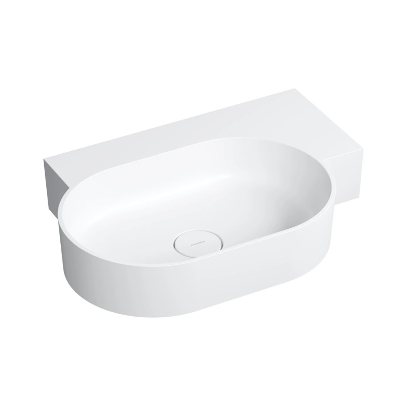 Opis produktu Omnires Ovo M+ Umywalka nablatowa lub wisząca 64,5x44,5 cm prawa biały mat OVO645UWPBM