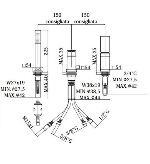 Paffoni Ringo Bateria nawannowa 2 otworowa biały mat RIN041LBO