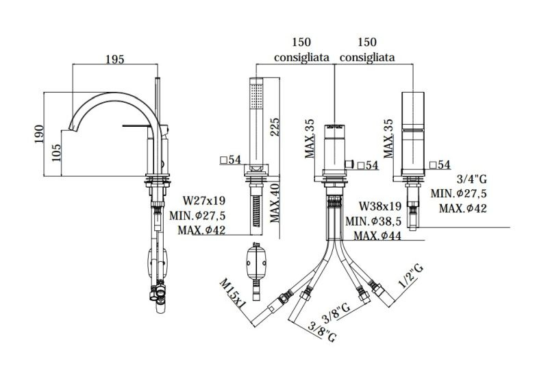 Paffoni Ringo Bateria wannowo-prysznicowa 3-otworowa biały mat RIN040LBO