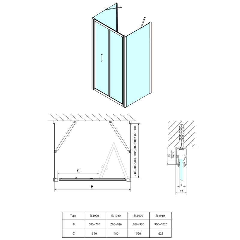 Polysan Easy Line Kabina prysznicowa prostokątna 80x70x190 cm drzwi składane EL1980EL3115EL3115