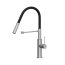 Quadron Gemma Q Line Bateria kuchenna wysoka z wyciąganą wylewką stal szczotkowana/czarny wąż 3623501_BSBL