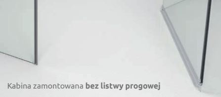 - Możliwość montażu bez listwy progowej - w standardzie otrzymują Państwo wszystkie komponenty potrzebne do montażu kabiny prysznicowej zarówno z listwą progową jak i bez listwy. Szczegółowe informacje znajdują się w instrukcji montażu