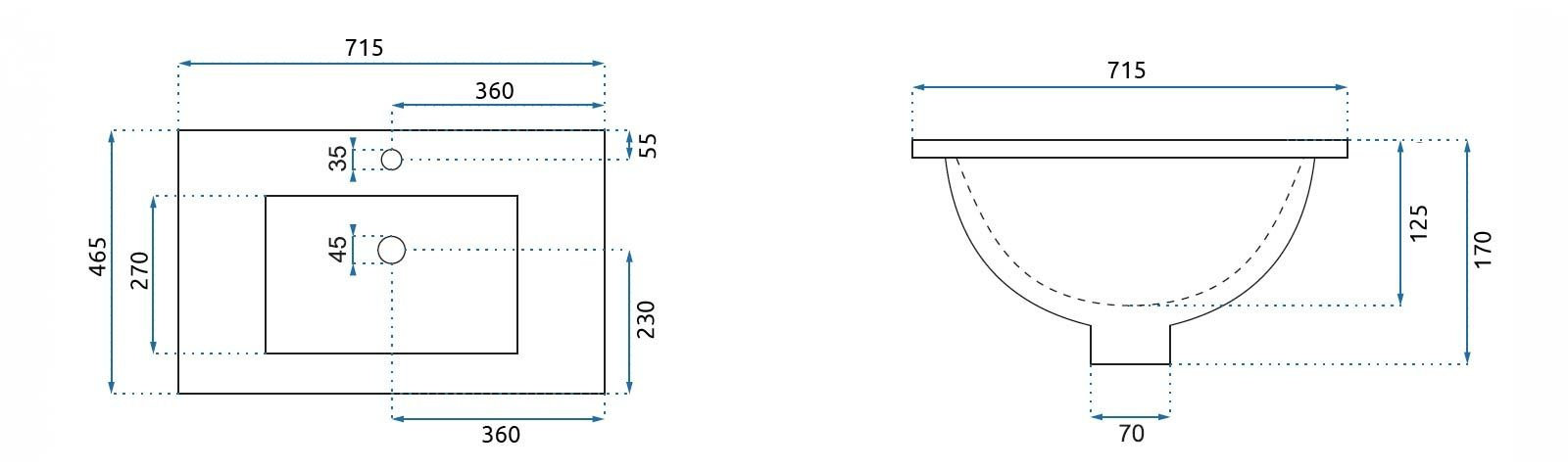 Opis produktu Rea Dafne 70 Umywalka wpuszczana 70x47 cm, biała REA-U0190