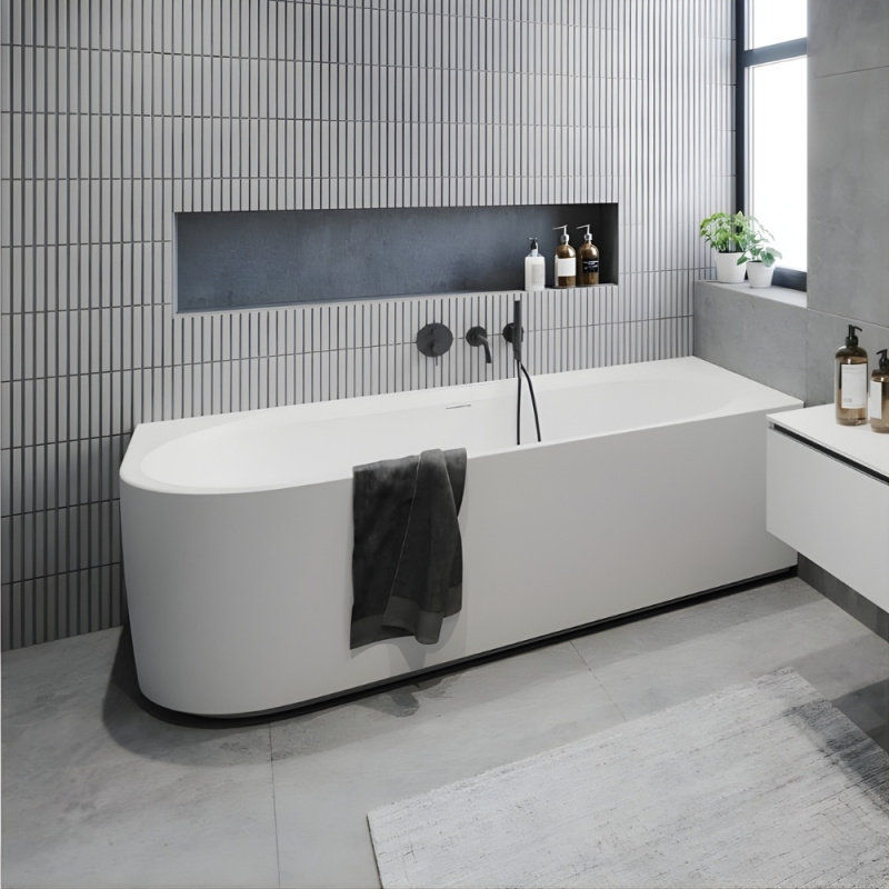 Wanny Riho wykonane są z akrylu sanitarnego, czyli tworzywa sztucznego, który słynie z wysokich paramentów użytkowych: jest lekki, barwiony w całym przekroju, łatwy w montażu, przyjemny w dotyku, a także długo utrzymuje ciepło, stanowiąc odpowiednią izolację termiczną. Surowiec wykazuje właściwości antypoślizgowe oraz nie generuje problemów związanych z usuwaniem zanieczyszczeń, osadów oraz kamienia. Jego gładka, nieporowata powierzchnia wpływa na zwiększoną higieniczność rozwiązań Riho, zapobiega rozwojowi bakterii i osadzaniu się mydła oraz tłuszczów, a tym samym ułatwia sprzątanie, redukując konieczność stosowania inwazyjnych detergentów. Akryl sanitarny należy do rozwiązań wyjątkowo trwałych, co w przypadku wyrobów marki Riho wzmocnione zostało poprzez zastosowanie od zewnątrz włókna szklanego z domieszką poliestru. Dodatkowo dno każdej wanny Riho usztywniono laminowaną płytą wiórową zapewniającą doskonałą stabilność. Produkty są odporne na promienie UV, co oznacza, że nie zmieniają koloru po wielu latach eksploatacji, a także są bardzo odporne na uszkodzenia mechaniczne, ograniczają do minimum czynności konserwacyjne i obniżają koszty eksploatacyjne. Wanny łazienkowe z akrylu produkowane przez firmę Riho to wybór oznaczający funkcjonalność, długą żywotność i piękno – krótko mówiąc, to inwestycja, która się opłaca!