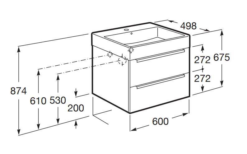 - Wymiary szafki z umywalką: 60 x 50 x 67,5 cm