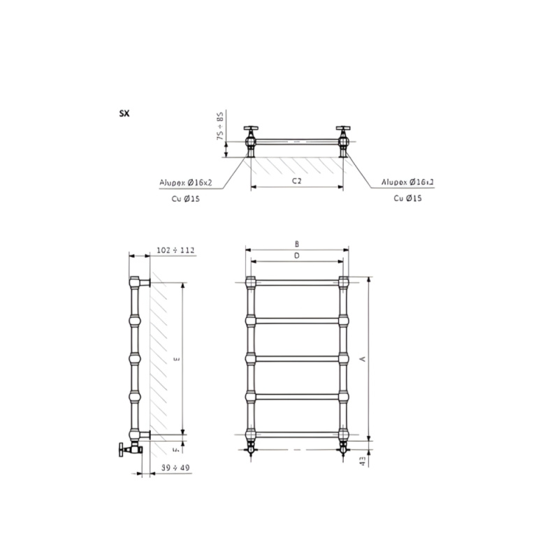 - Podłączenie zaworów: SX - do pionowych rurek (kolektorów) grzejnika