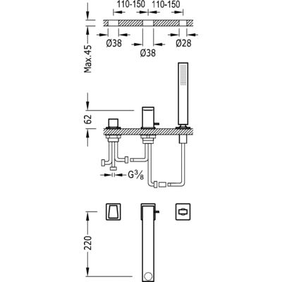 Tres Slim-Tres Bateria nawannowa 3 otworowa chrom 202.161.02