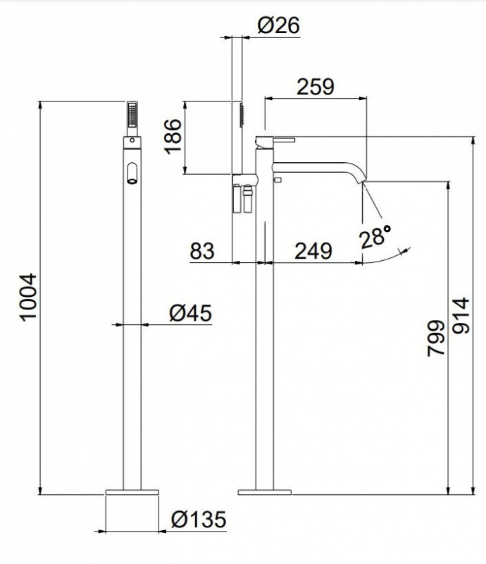 Vema Maira Bateria wannowa wolnostojąca chrom V27190