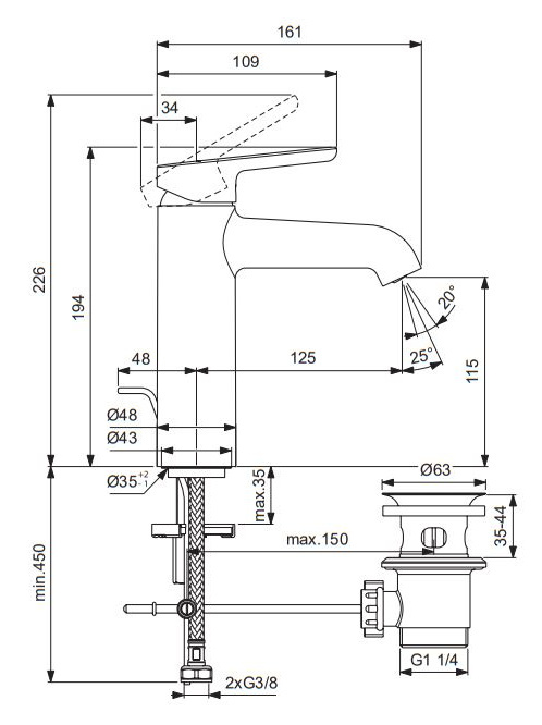 - Zasięg wylewki: 12,5 cm