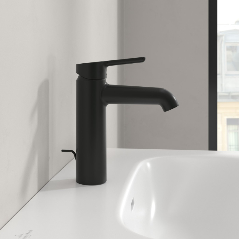 Zapytaj o Villeroy & Boch Skyla Bateria umywalkowa z korkiem czarny mat TVW116005000K5
