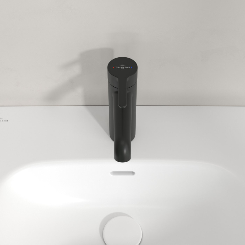 Opis produktu Villeroy & Boch Skyla Bateria umywalkowa z korkiem czarny mat TVW116005000K5