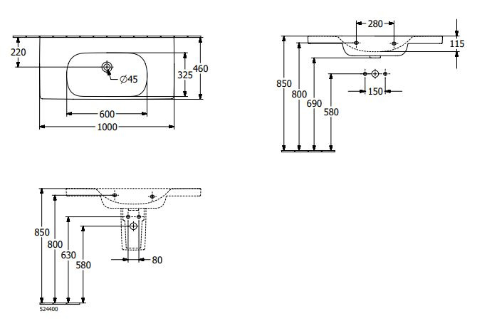 Opis produktu Villeroy & Boch Skyla Umywalka meblowa 100x46 cm bez otworu na baterię bez przelewu biały Weiss Alpin 5A51A301
