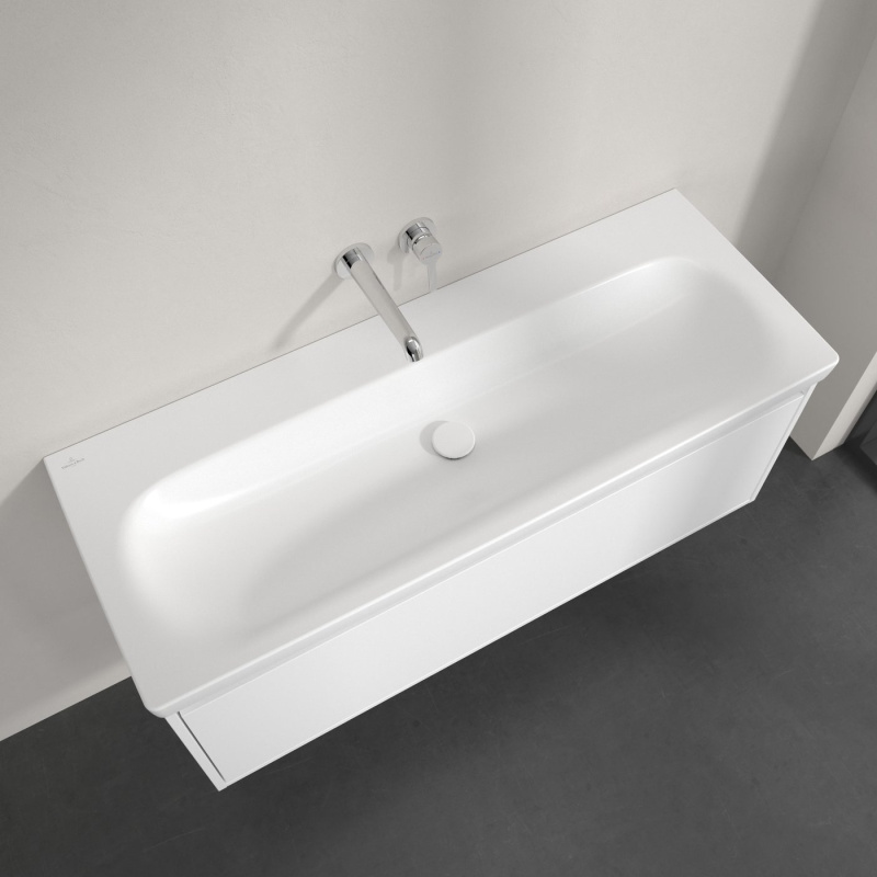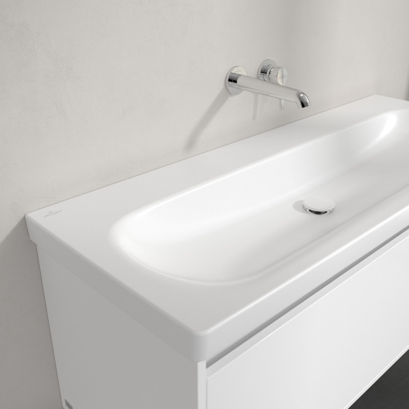 Opis produktu Villeroy & Boch Skyla Umywalka meblowa 120x46 cm bez otworu na baterie bez przelewu biały mat Stone White z powłoką CeramicPlus 5A51C3RW