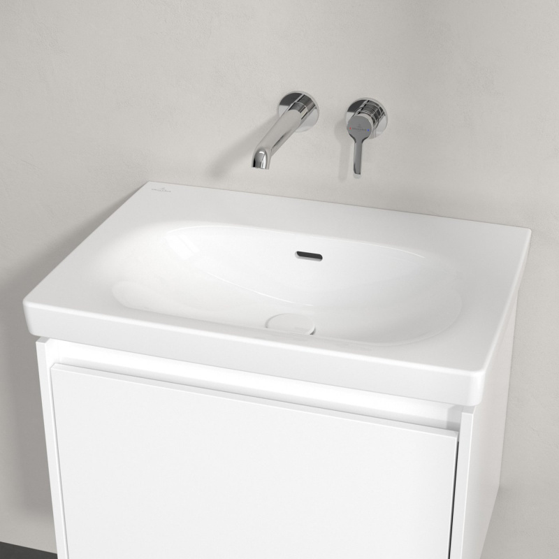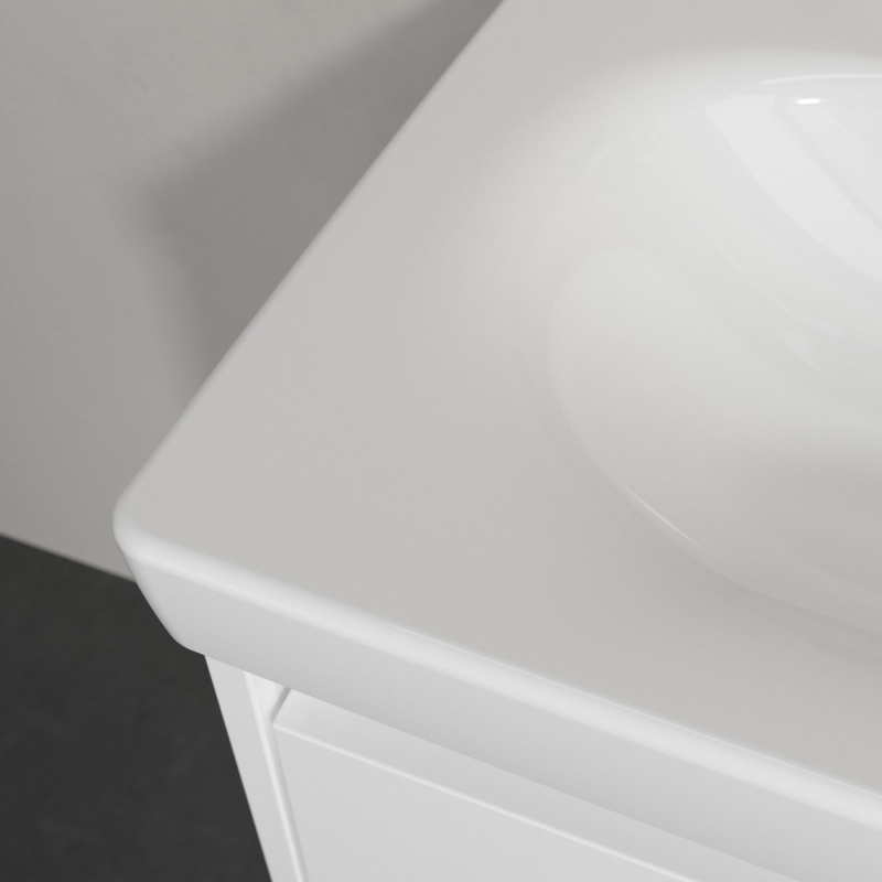 Opis produktu Villeroy & Boch Skyla Umywalka meblowa 65x46 cm bez otworu na baterię z przelewem biały Weiss Alpin z powłoką CeramicPlus 5A5167R1
