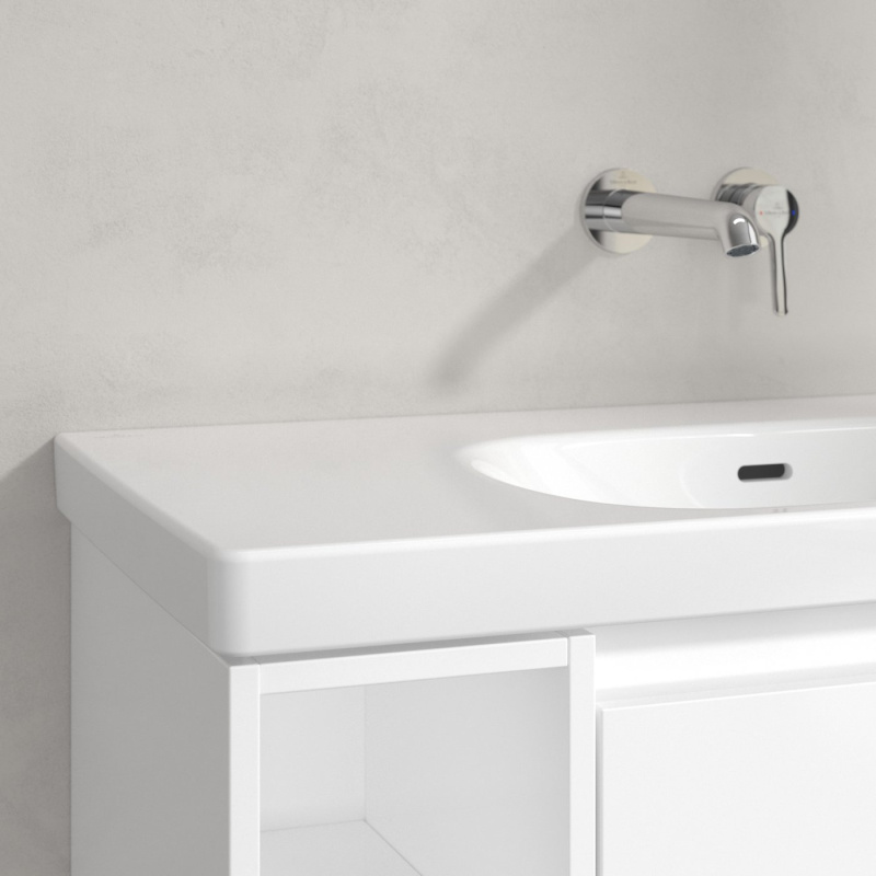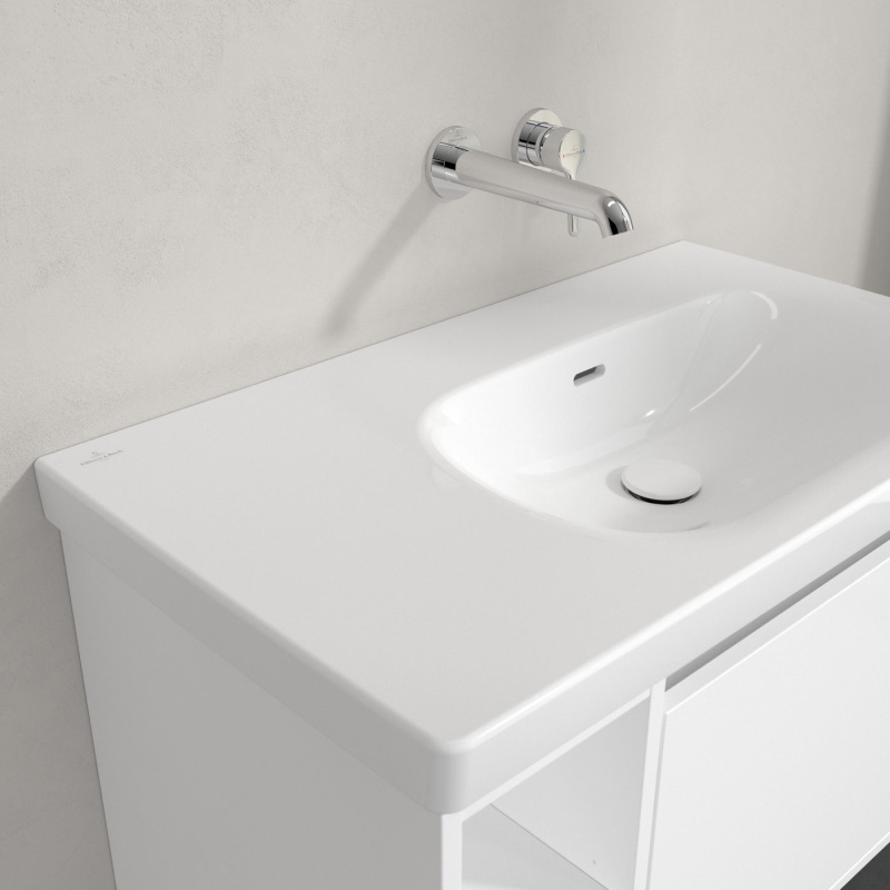 Opis produktu Villeroy & Boch Skyla Umywalka meblowa 80x46 cm bez otworu na baterię z przelewem prawa biały Weiss Alpin 5A52R301