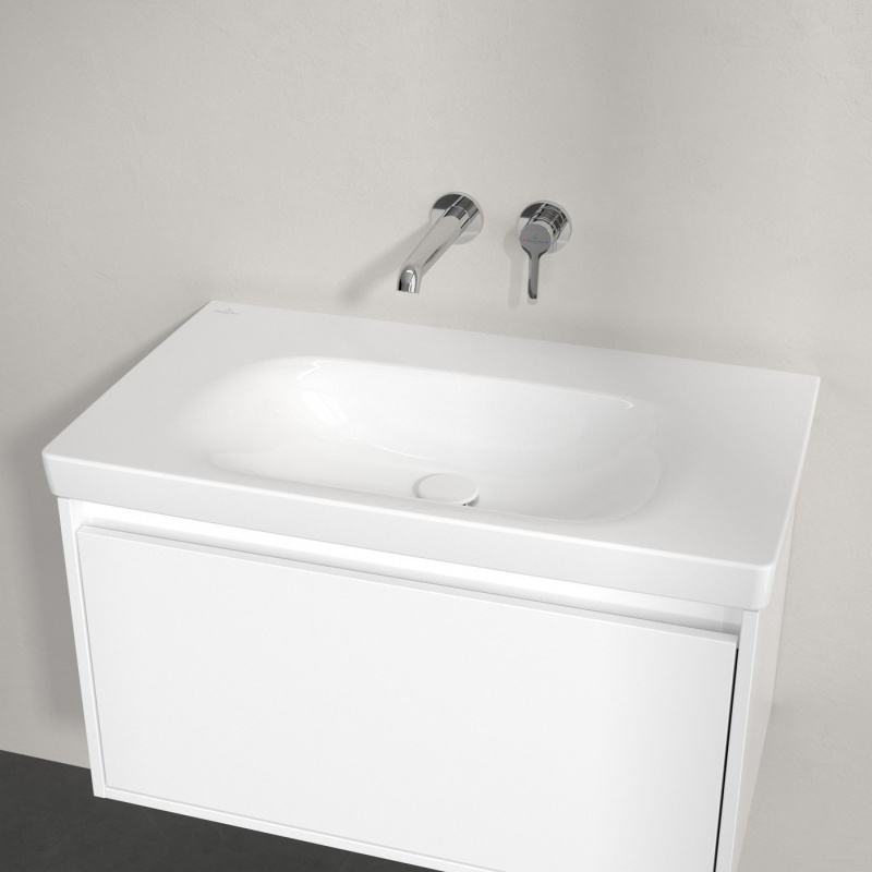 Opis produktu Villeroy & Boch Skyla Umywalka meblowa 80x46 cm bez otworu na baterię bez przelewu biały Weiss Alpin z powłoką CeramicPlus 5A5183R1