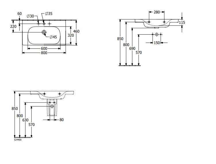 Opis produktu Villeroy & Boch Skyla Umywalka meblowa 80x46 cm z otworem na baterię bez przelewu biały Weiss Alpin 5A518101