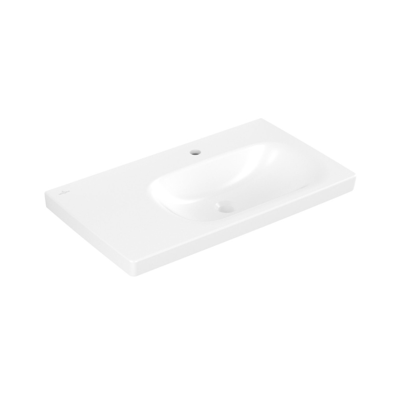 Opis produktu Villeroy & Boch Skyla Umywalka meblowa 80x46 cm z otworem na baterię bez przelewu prawa biały mat Stone White z powłoką CeramicPlus 5A52R2RW
