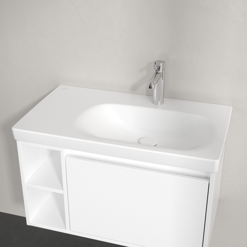 Dodaj ocenę i opinię o Villeroy & Boch Skyla Umywalka meblowa 80x46 cm z otworem na baterię bez przelewu prawa biały mat Stone White z powłoką CeramicPlus 5A52R2RW