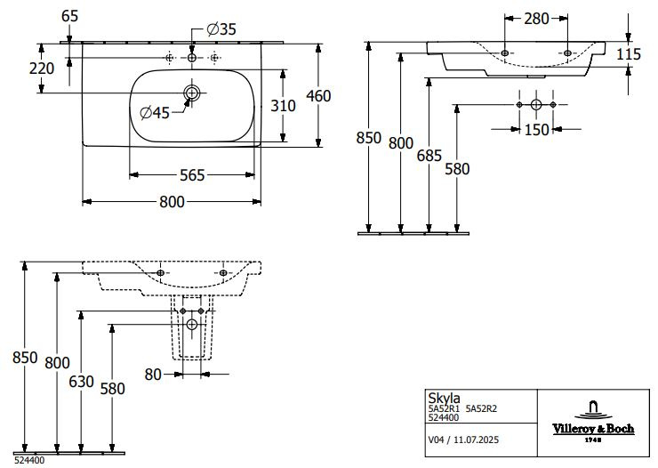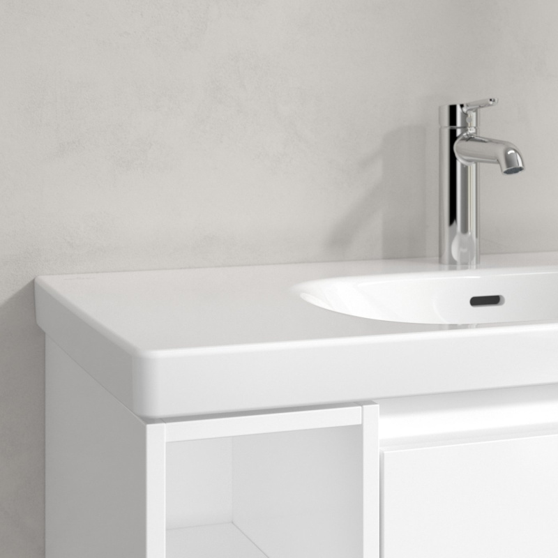 Opis produktu Villeroy & Boch Skyla Umywalka meblowa 80x46 cm z otworem na baterie z przelewem prawa biały Weiss Alpin 5A52R101