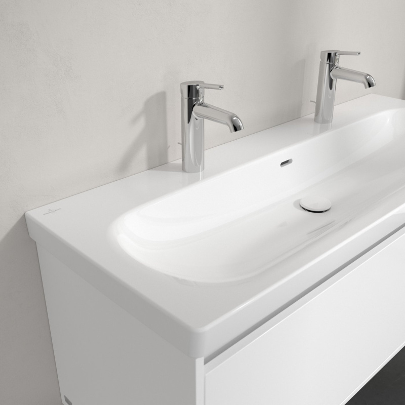 Dodaj ocenę i opinię o Villeroy & Boch Skyla Umywalka meblowa 120x46 cm podwójna z dwoma otworami na baterie z przelewem biały Weiss Alpin z powłoką CeramicPlus 5A51C4R1