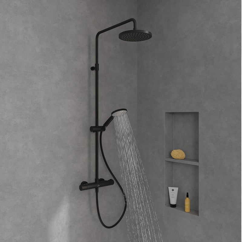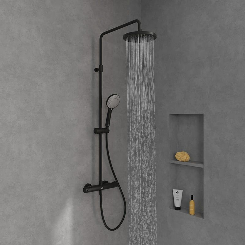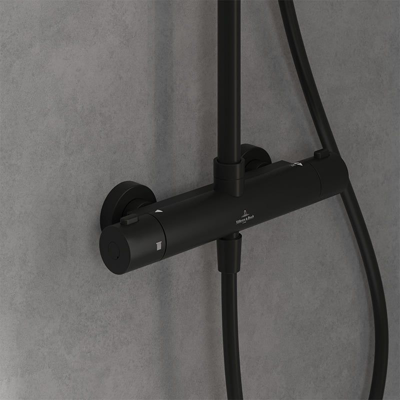 Opis produktu Villeroy & Boch Universal Showers Zestaw prysznicowy termostatyczny natynkowy z deszczownicą czarny mat TVS109002000K5