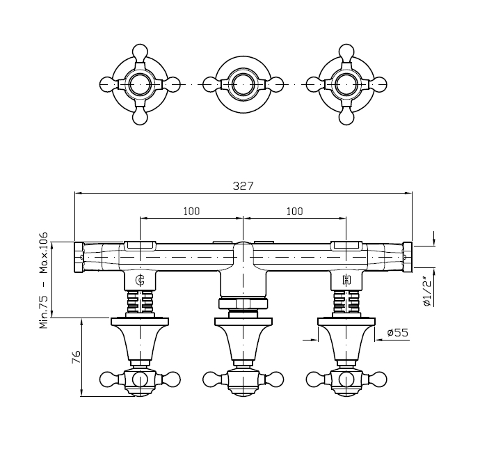 Opis produktu Zucchetti Agora Bateria wannowo-prysznicowa 3-otworowa chrom ZAG695.GEM